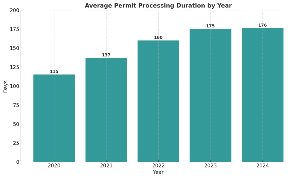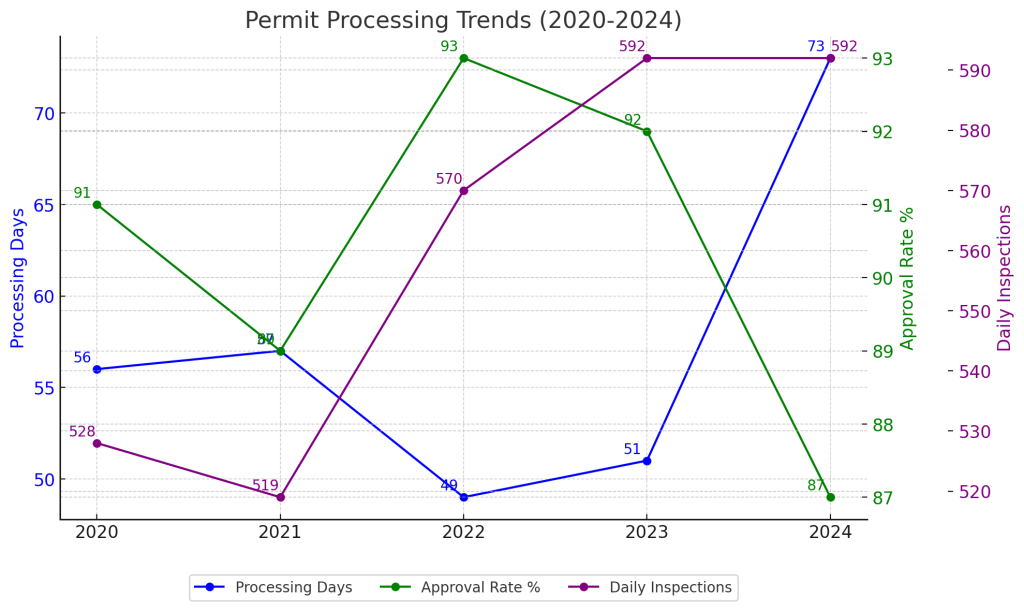 Analysis of permit processing data shows significant changes from 2020 to 2024: