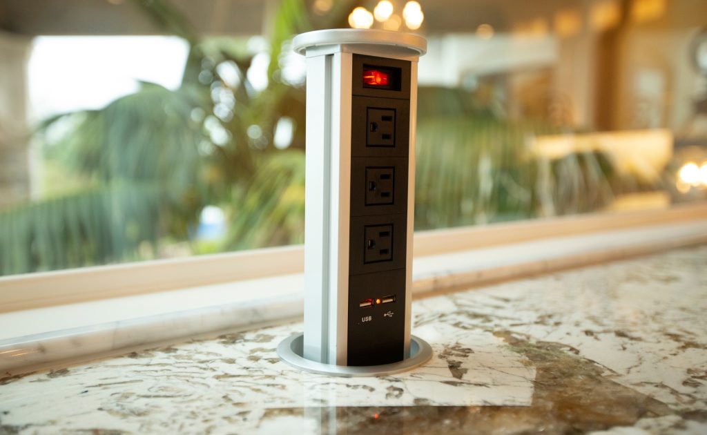 Technological Advances: “Electrical advances continue unabated! Square recessed lights, outlets with USB or USB-C ports, outlet strips tucked under wall cabinets, outlets in the back of drawers, and pop-up electronic ports are all the rage. InvisaCook even makes cooktops that require no surface elements installed under porcelain countertops. This is perfect for small kitchens, as the area can be used as a regular countertop when not being used to heat food.”