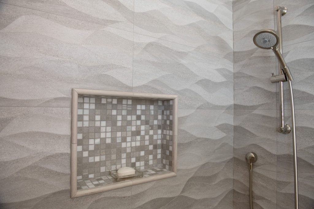 Textured Accents: Use of textured tiles and wall coverings to add depth and interest without overwhelming the space.