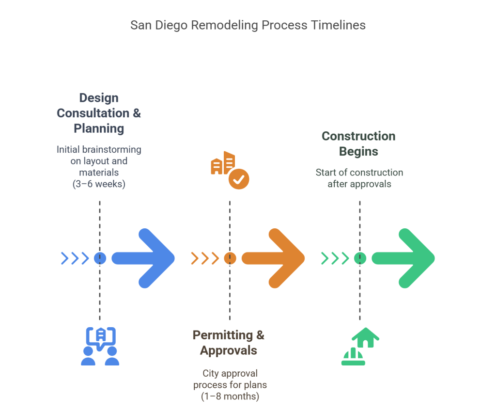 📅 Step 1: Design Consultation & Planning (3–6 weeks) → We brainstorm layout, materials, and project scope.