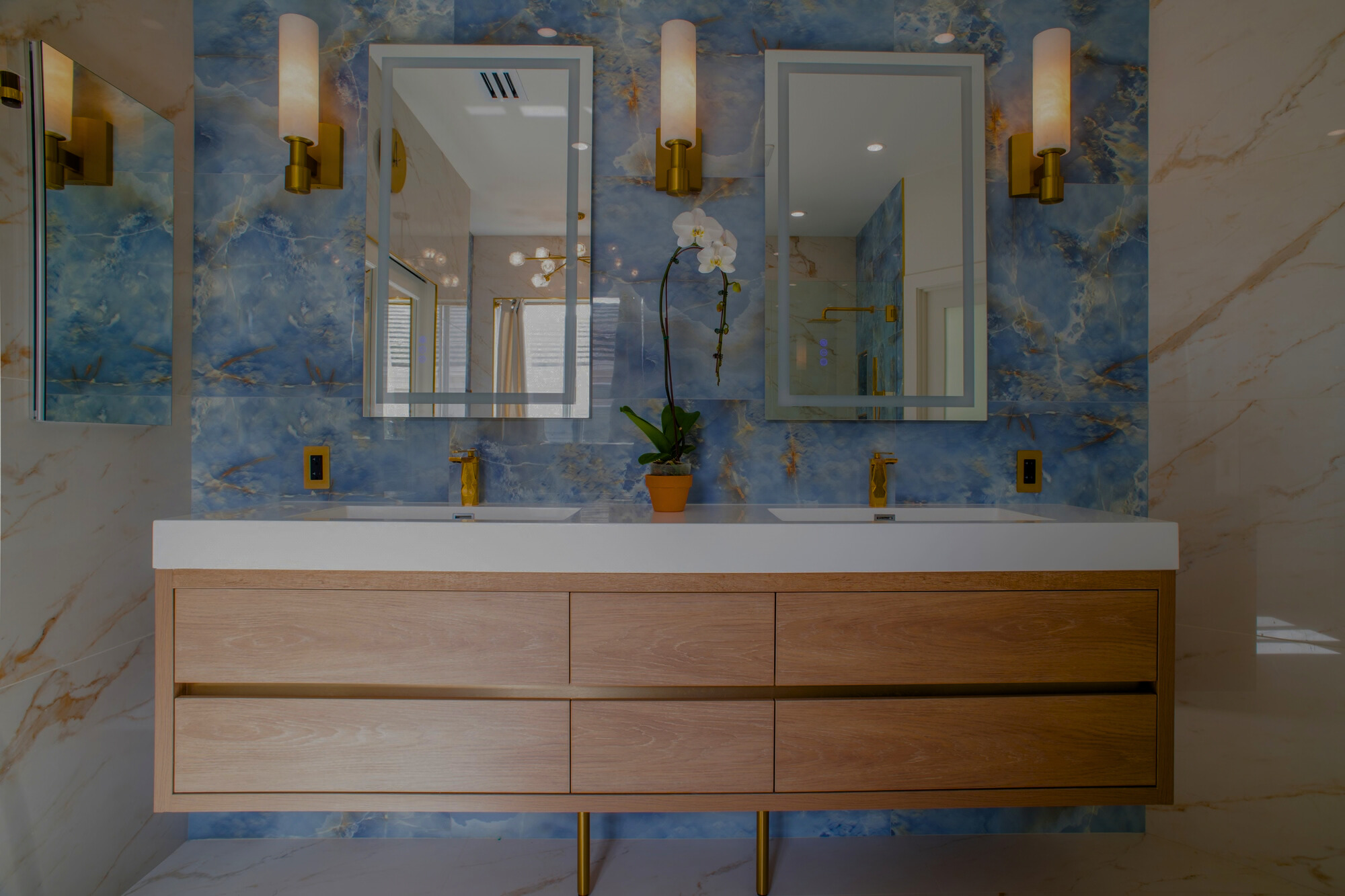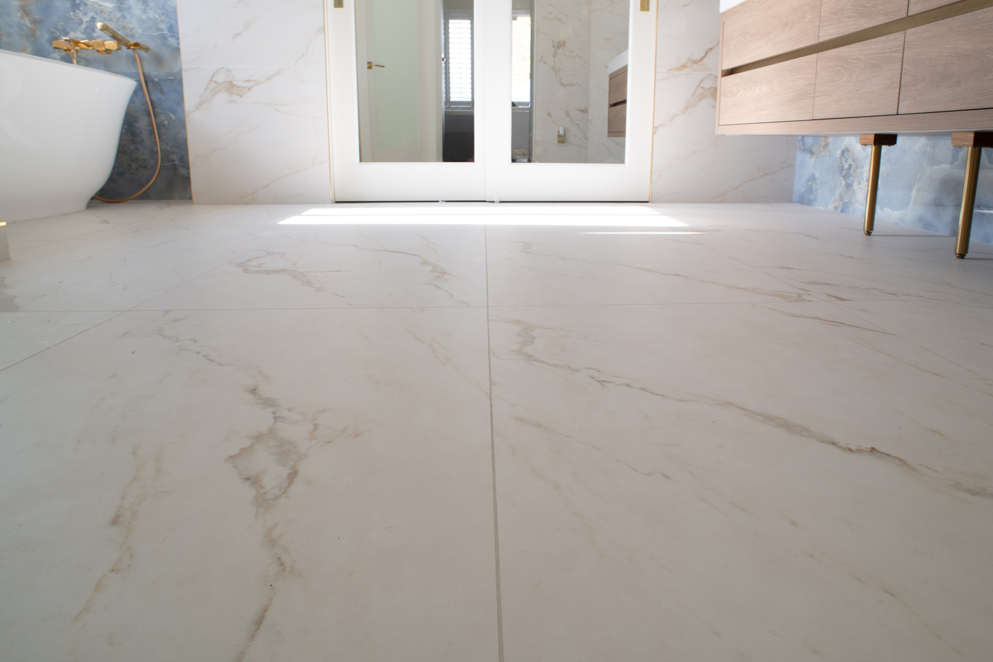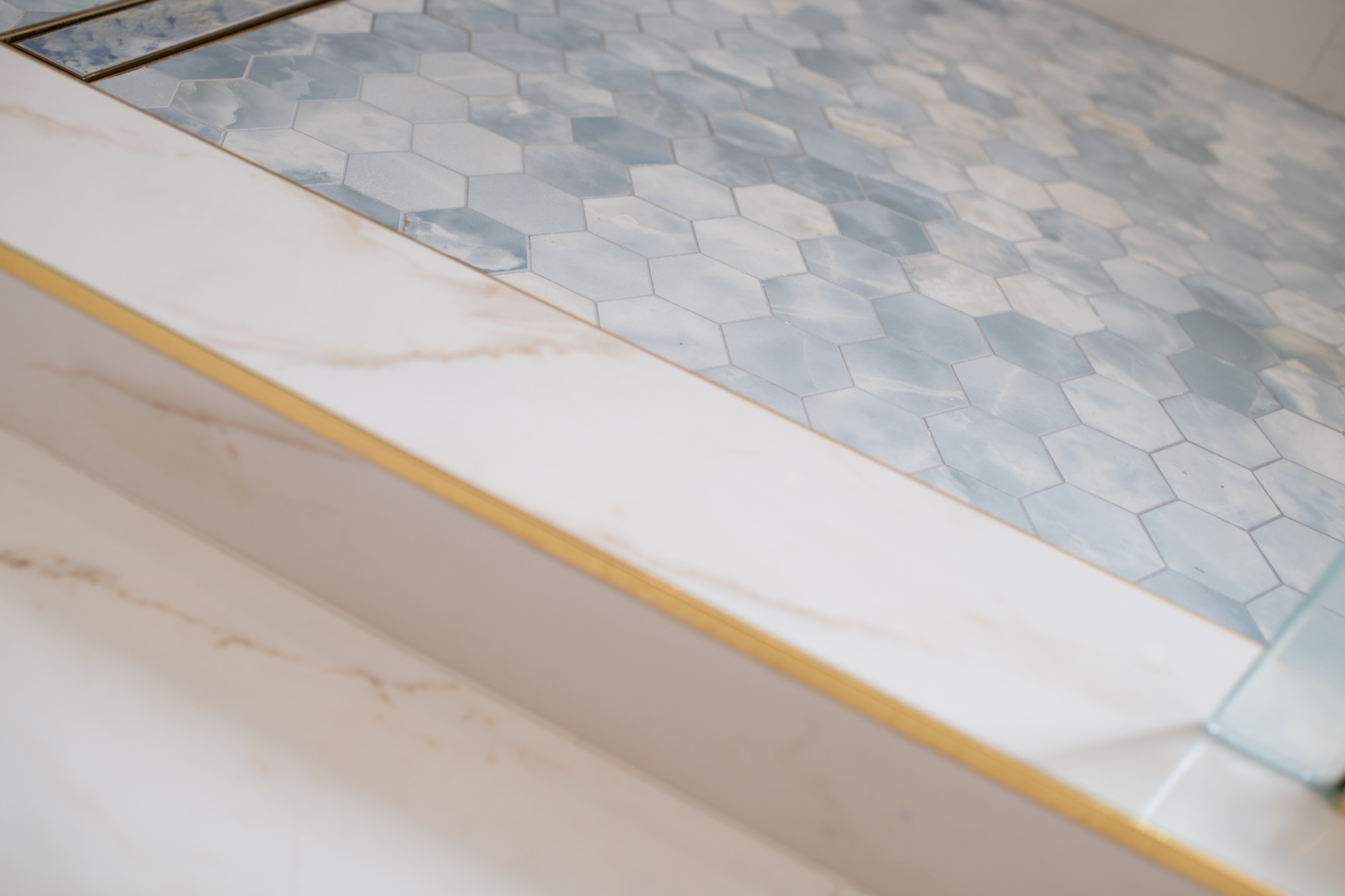 The homeowners knew tile would be the centerpiece, but executing a tile-forward design with contrasting surfaces isn’t something you can “wing.” The challenge was achieving a refined, intentional look where the tilework feels cohesive, the transitions are clean, and small details don’t distract from the overall luxury.