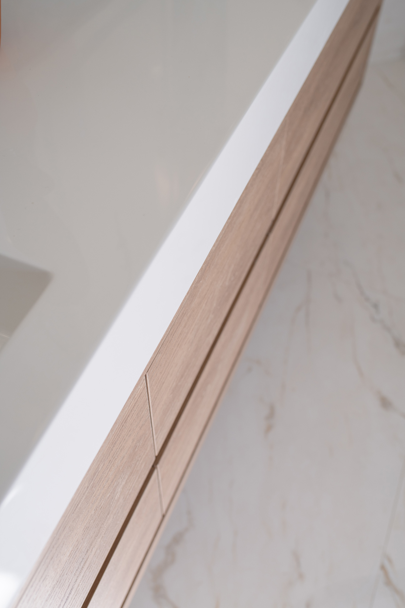 This Chula Vista master bath was more than 20 years old, and it showed. An outdated layout, a non-functional bathtub, and a tight shower enclosure made the space feel frustrating day to day. From the beginning, the homeowners knew exactly what they wanted as the “core” of the remodel: tile—lots of it—with a design that felt elevated, intentional, and anything but off-the-shelf. After meeting with other companies and coming up short on a design vision, they found Kaminskiy and partnered with Andrea Short and Haley Overlund to bring their ideas into a real, buildable plan. The result is a striking, luxurious retreat, anchored by dramatic tilework, a sculptural freestanding soaking tub, and floating cabinetry, and executed with the kind of detail you notice more and more every time you step inside.