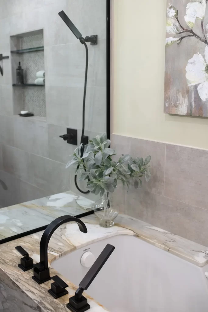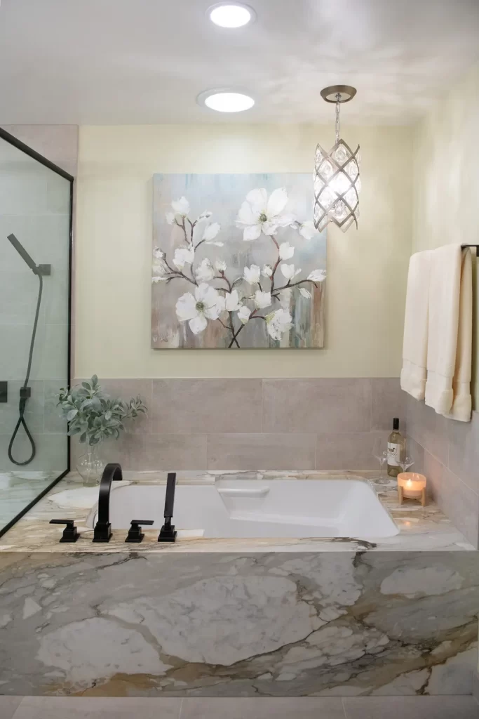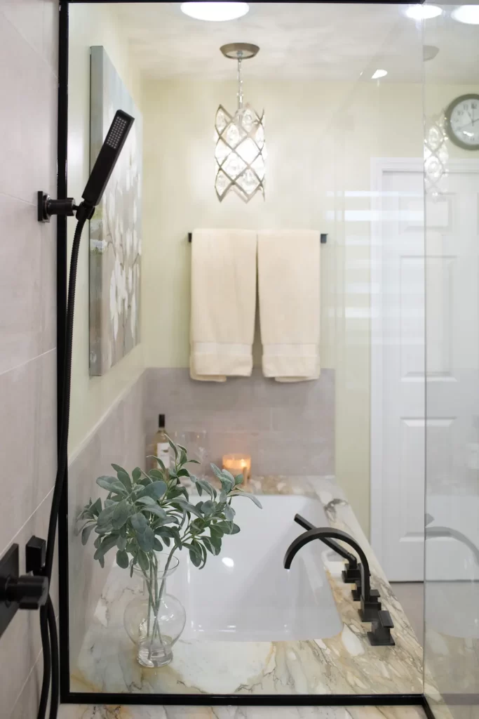 Our design-build team completely reimagined the space, creating a luxurious master bathroom that combines functionality with sophisticated style.