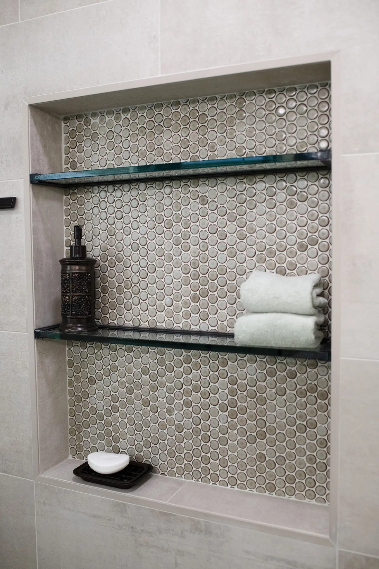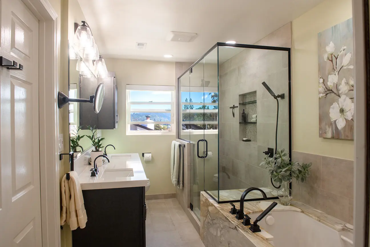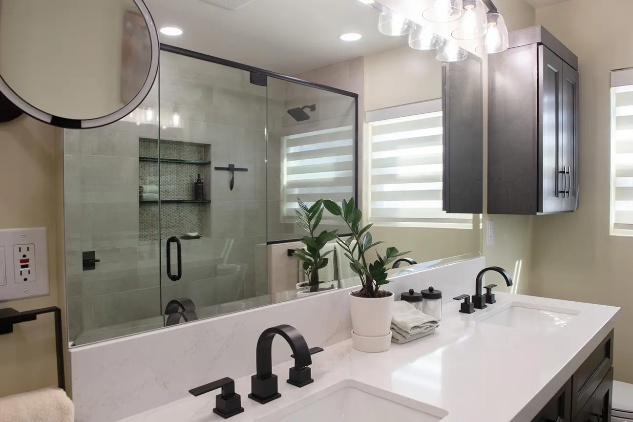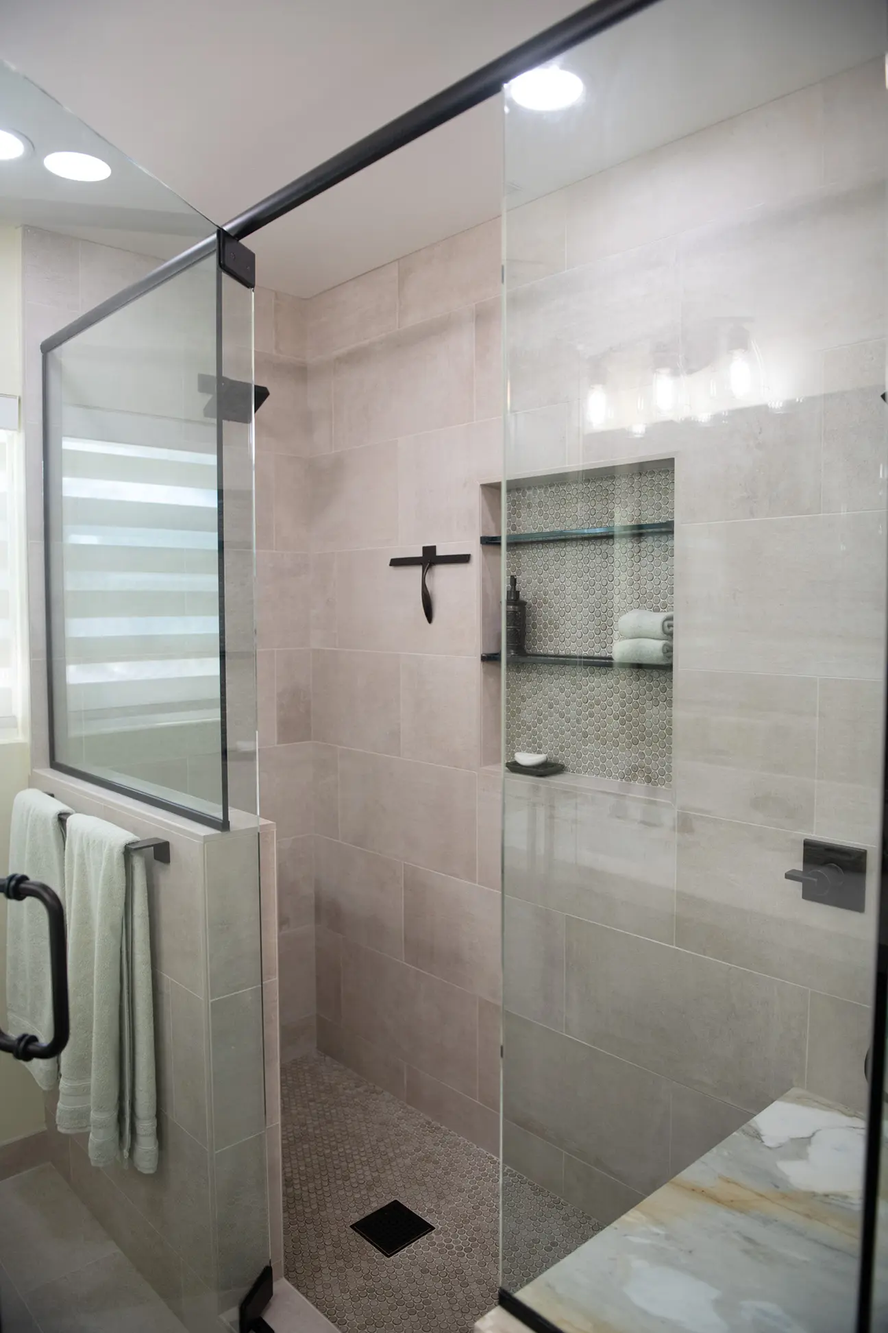 Transform your dated bathroom into a spa-like retreat. This Escondido bathroom remodel showcases how Kaminskiy Design and Remodeling can revolutionize your space with modern design and premium materials.