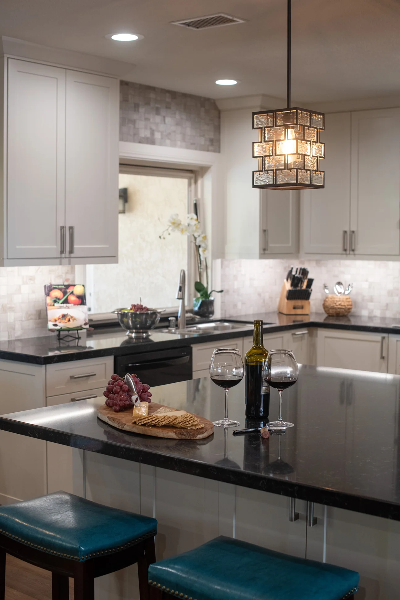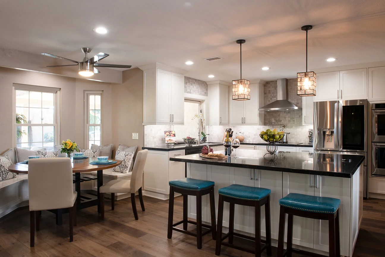 This Poway home needed a cozy and welcoming space to host and entertain guests and family. With a mix of textures and the use of blue as a pop of color, this space achieved the perfect balance between luxury and a cozy area.