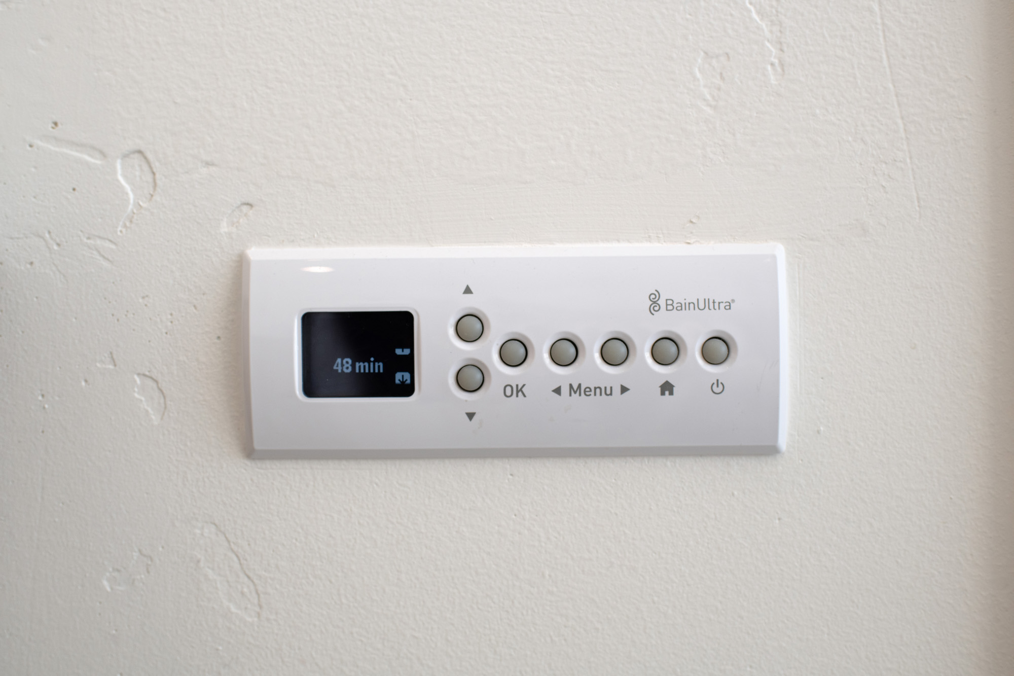 Bathtub: BainUltra Evanescence Oval with heated micro-bubble therapy—a sculptural soak that soothes body and mind in quiet luxury.