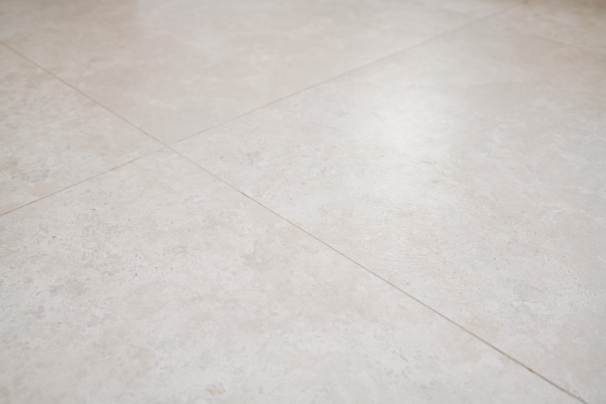 Floor Tile: Bedrosians Thaddeus matte porcelain in a soft, sand-washed tone—inviting underfoot, with built-in slip resistance for daily ease.