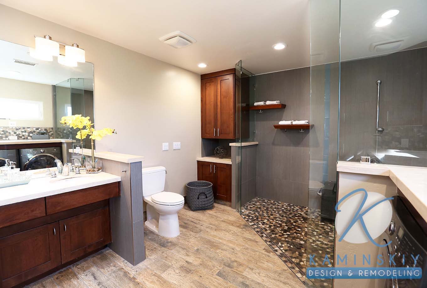 If this transformation has inspired you and you’re considering a similar project, we invite you to reach out to us. Our team at Kaminskiy Design and Remodeling is ready to help you create a space that meets your needs and reflects your personal style. Call us today or fill out the form to schedule your free in-home consultation to start the journey toward your dream bathroom and laundry space.