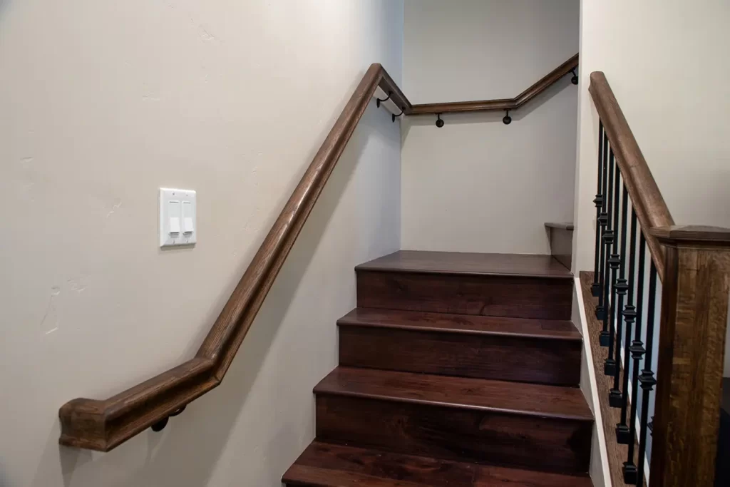 The kitchen sink area is a blend of functionality and style. The modern fixtures, combined with the sleek design, make it a focal point of the kitchen. The staircase leading to the second story of the ADU is a blend of modern design and functionality. The use of wooden steps, combined with sleek railings, adds to its charm.