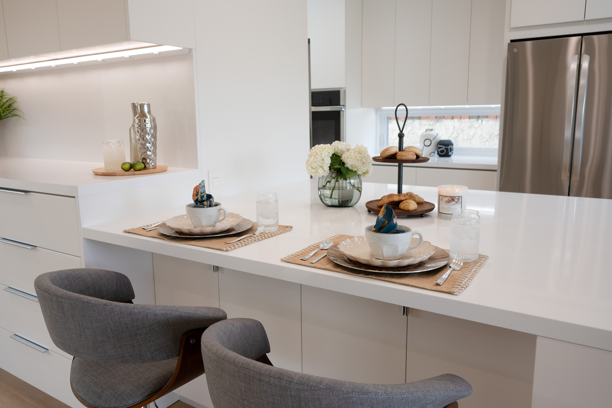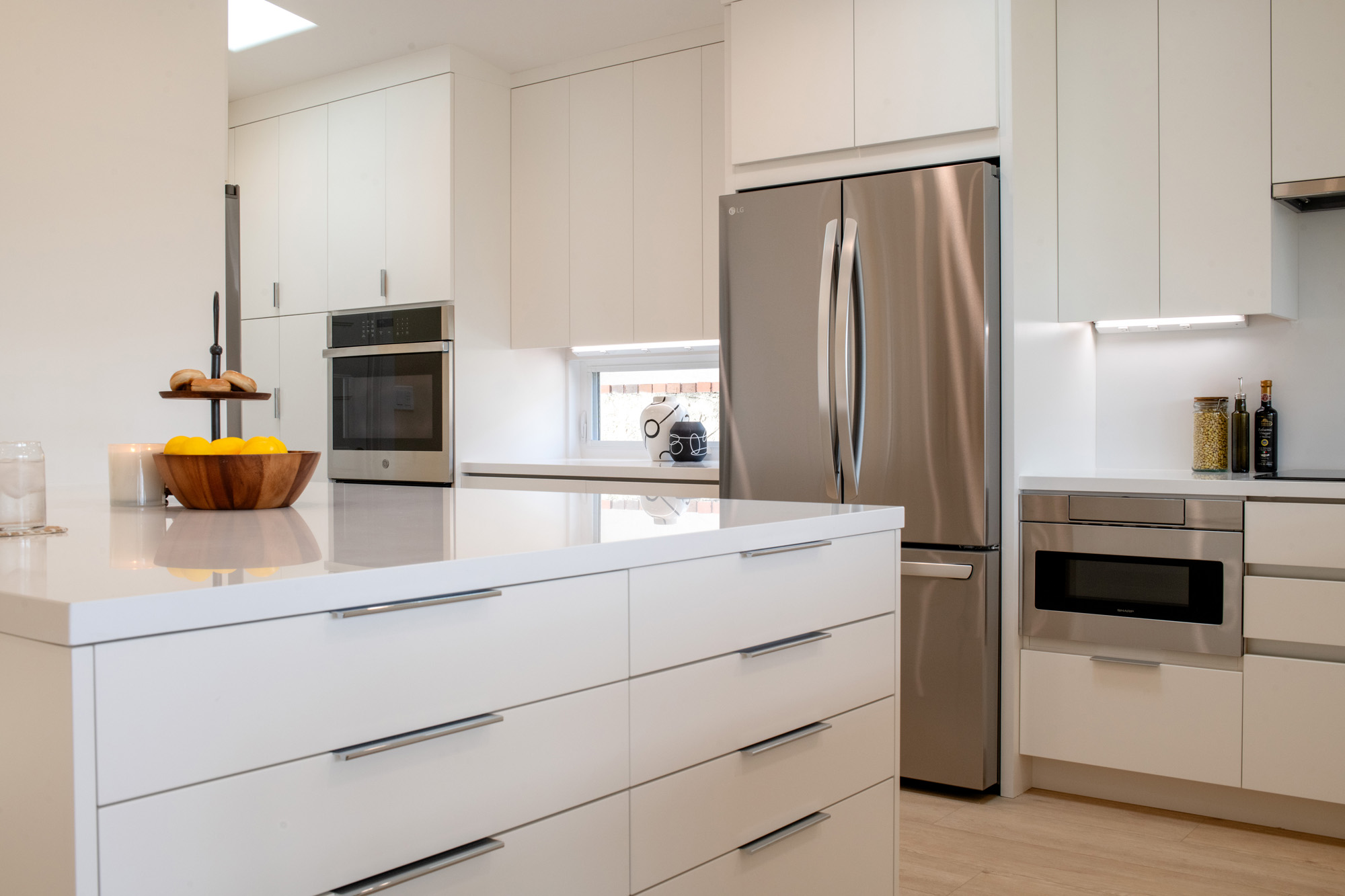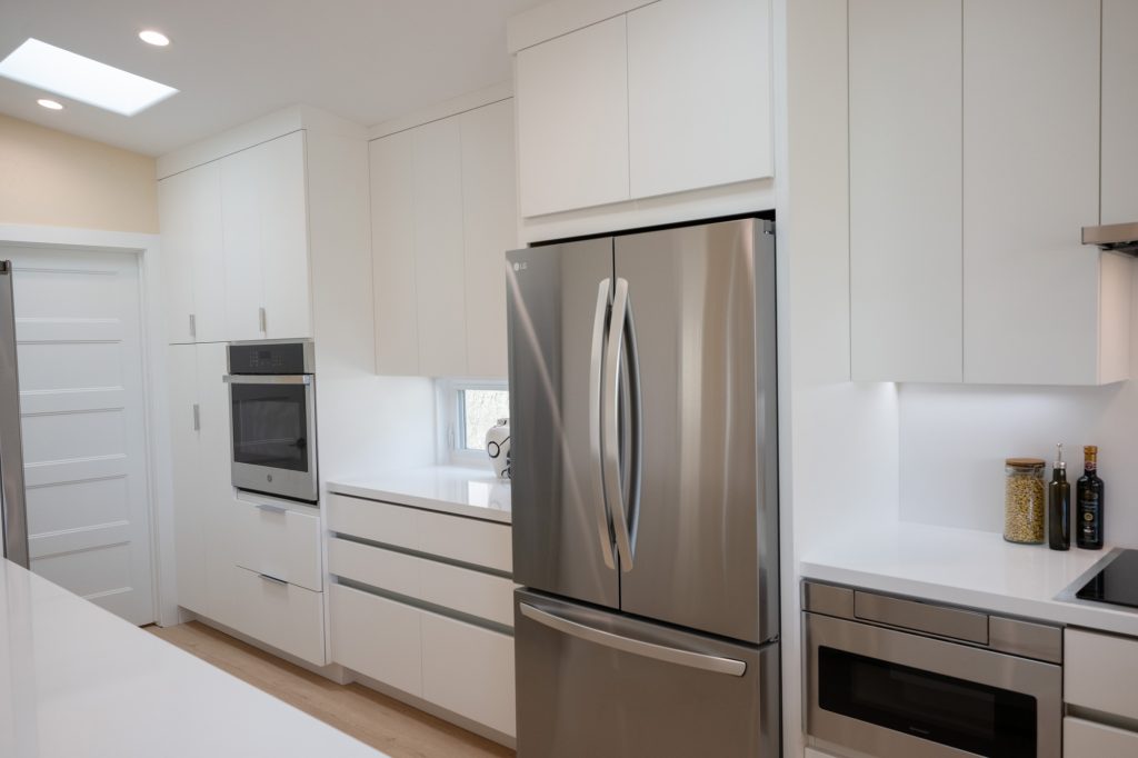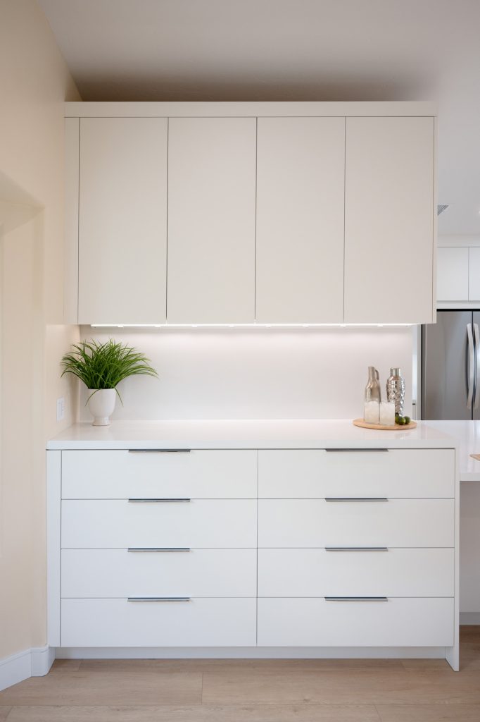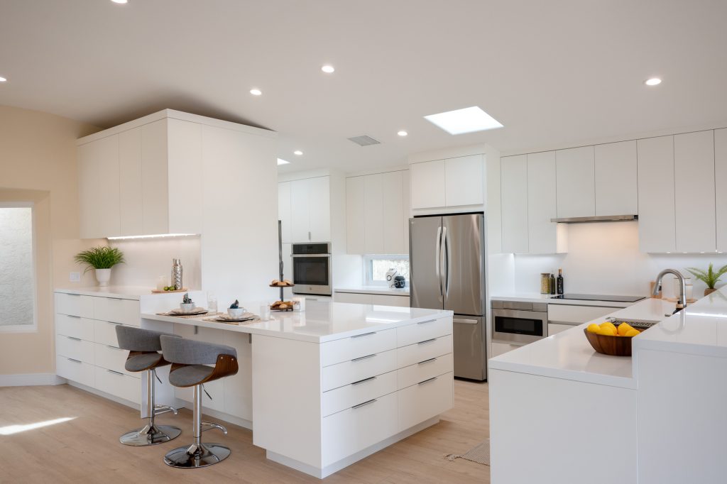 The main challenges in this remodel included creating a better layout, improving efficiency, and reflecting the client’s preference for a minimalistic design. The house originally had a more traditional design, and the clients desired a sleek, contemporary aesthetic transformation.