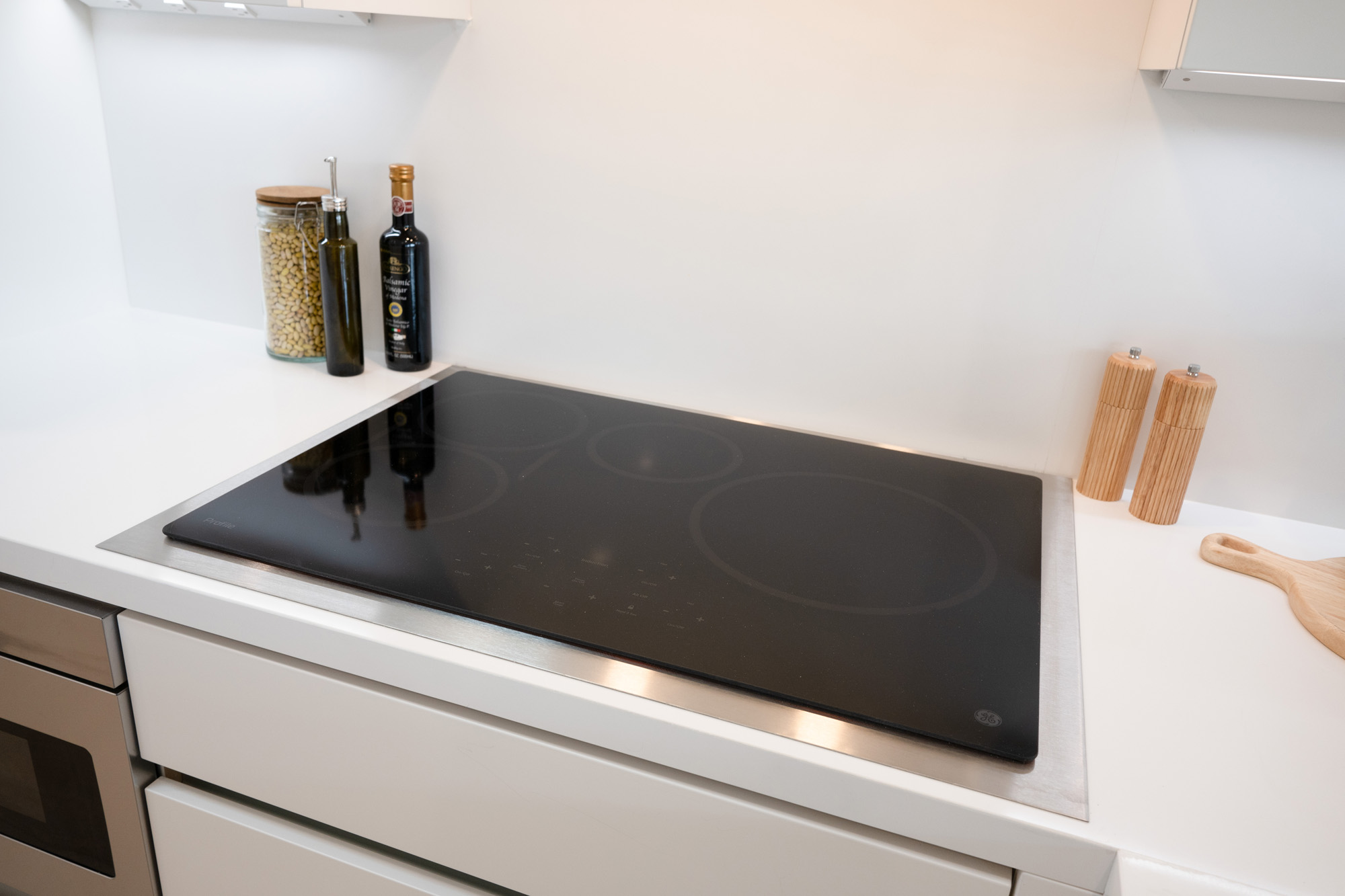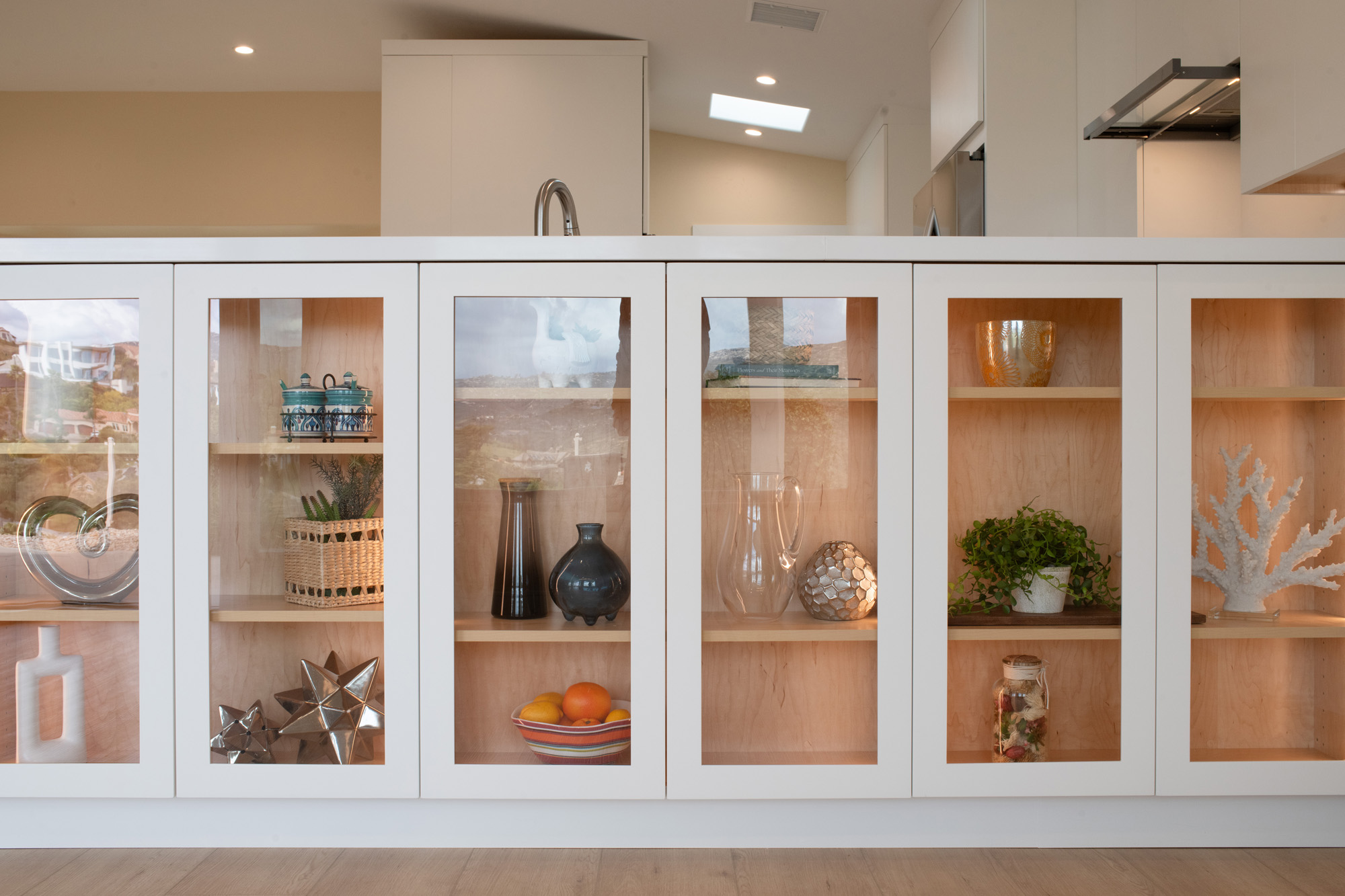 Kitchen Cabinets: Custom Crestwood Maple Cabinets—selected for their sleek, modern look and durable construction, perfectly aligning with the minimalistic design theme.