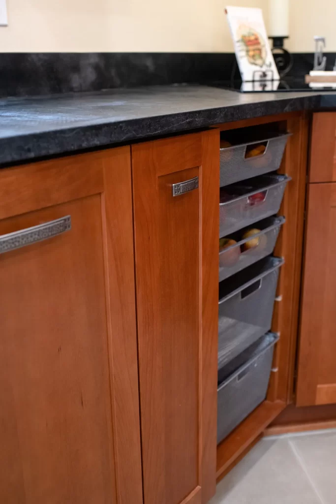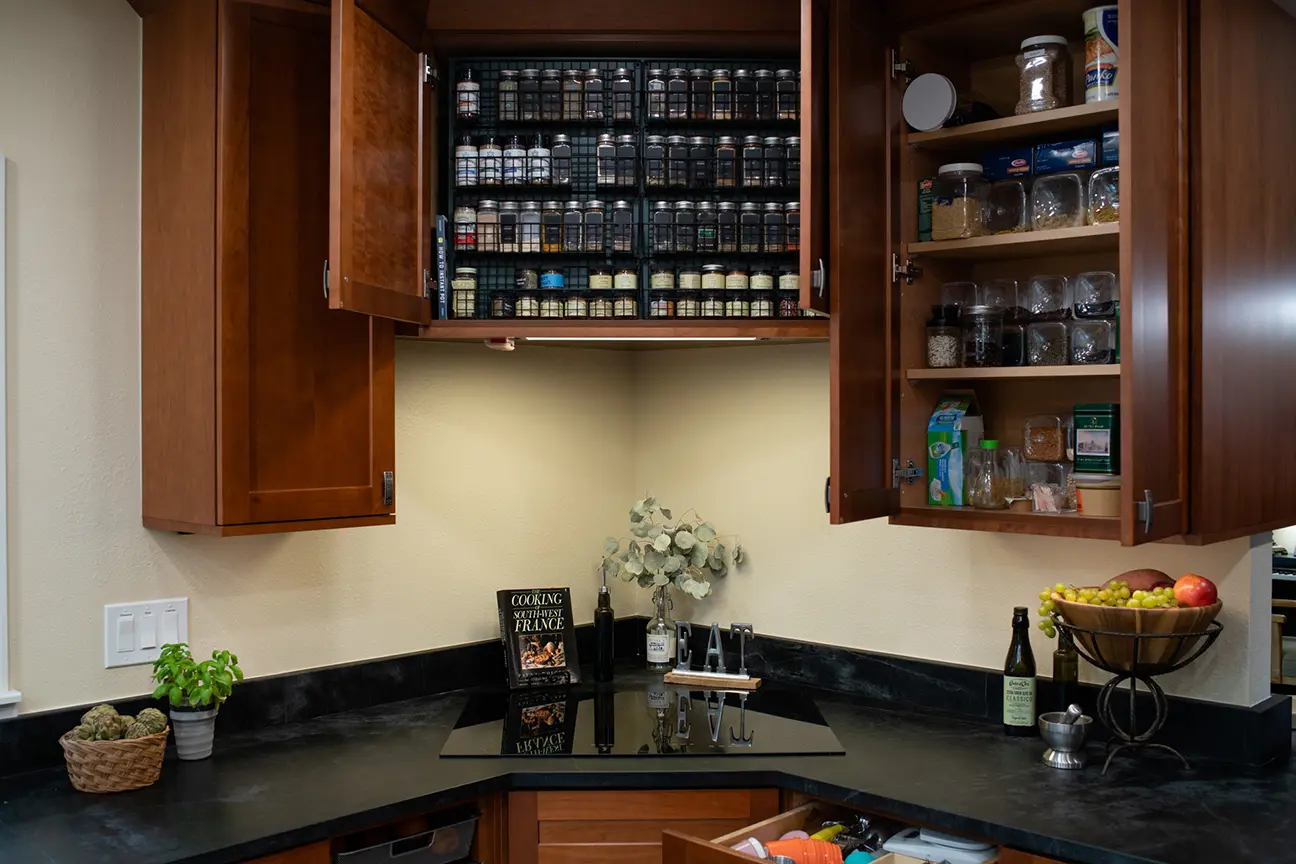 The remodel features a spice rack upgrade that provides easy access to your favorite spices, enhancing your cooking experience. The cabinet remodel offers ample storage space, keeping your kitchen organized and clutter-free.