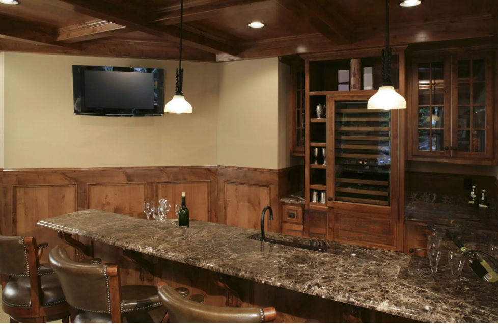 Select a style and theme that aligns with your home’s decor and taste. Whether you prefer a classic pub feel, a sleek modern look, or a casual and welcoming vibe, your bar should be a visual extension of your home. The theme will guide your design choices, from furniture to lighting.