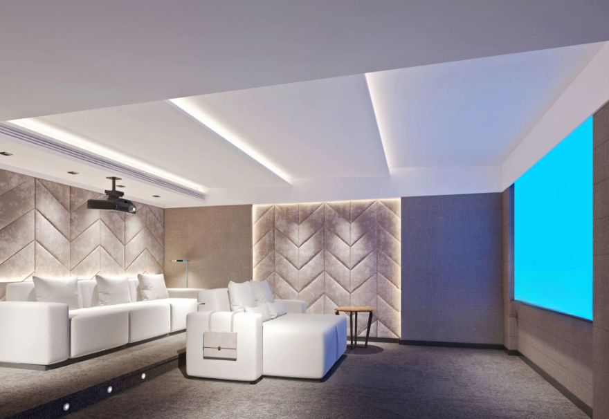 Choose dimmable wall sconces or LED strip lighting to emulate a movie theater atmosphere. Smart lighting that you can control remotely is also beneficial, allowing you to adjust brightness and color to match the mood of the film without having to move from your seat.